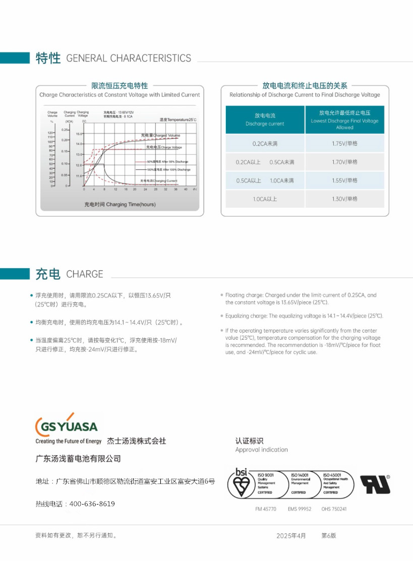 YUASA电池NPL系列是面向长寿命浮充应用的密封阀控式铅酸蓄电池(VRLA),核心优势在于超长寿命、低维护、高安全与稳定放电,常见于 UPS、通信基站、数据中心、应急照明等场景。采用耐蚀特殊铅钙合金板栅,配合强力压紧的正极活性物质与专用隔板,有效防止活性物质脱落;电解液比重极低,并添加胶体成分,避免电解液分层与极板腐蚀;20℃设计寿命 15 年,25℃时小容量(≤85Ah)10 年、大容量(≥100Ah)可达 12 年;浮充电流极低,进一步减缓老化。配置防爆栓,极端过充时可安全排气、防止壳体破裂;防爆结构可阻止外部火花引燃电池内部,避免酸雾泄漏腐蚀设备与人员。